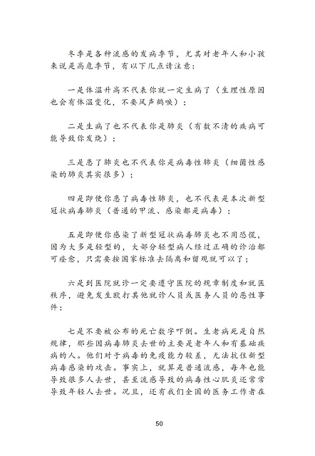 《新型冠状病毒肺炎防护知识读本》(网络版)科学规范、深入浅出,图文并茂、通俗易懂,力求对新型冠状病毒感染的肺炎的相关知识进行科学普及,扫清因各种谣言、不明真相而产生的恐慌和误解。面对当前疫情防控的严峻形势,该网络版的及时推出对提升群众自我防护的意识与信心、科学防控疫情具有重要意义。