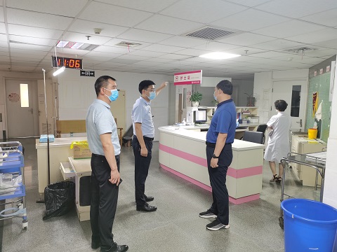 检查组一行分别对预检分诊、发热门诊以及发热观察区、核酸采集点、住院病区等进行督导检查,现场查看和详细询问预检分诊、发热门诊和发热观察区对发热患者的预检处置、转运流程以及发热患者隔离措施等情况。紧接着检查组一行又到妇科病区进行现场查看,妇科病区护士长就常态化疫情防控工作下如何确保医疗质量安全进行简要汇报。